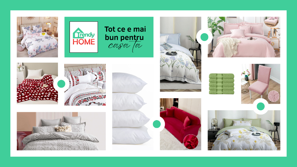 Fie că vrei să-ți înfrumusețezi dormitorul cu lenjerii din bumbac finet, să protejezi mobilierul cu huse moderne sau să adaugi un strop de confort cu prosoape pufoase, aici găsești produse practice, frumoase și accesibile.