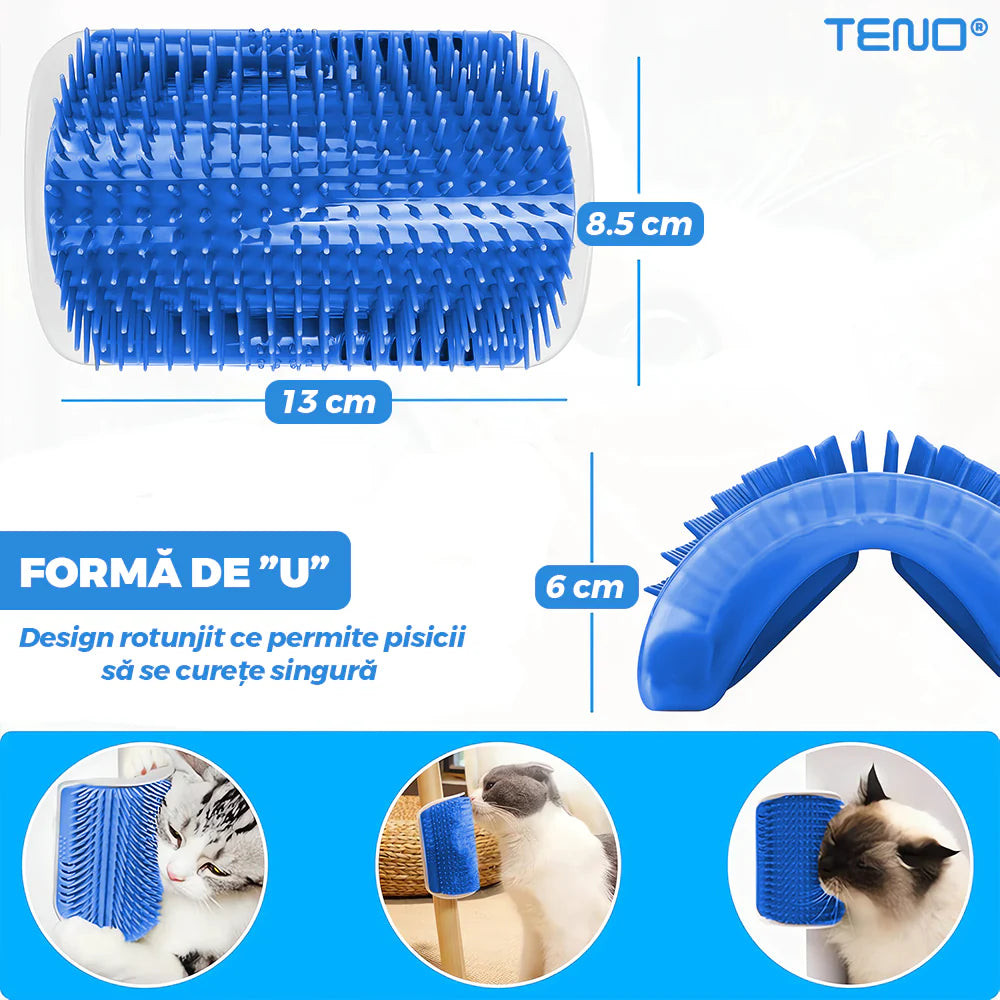 Pisicile adoră să se frece de colțuri — exact de aici vine ideea acestei perii! Teno1852 este o perie de colț pentru self-grooming (îngrijire singură), cu design curbat ce urmărește forma corpului, astfel încât pisica să se poată „scărpina” și îngriji comod, oricând vrea.
