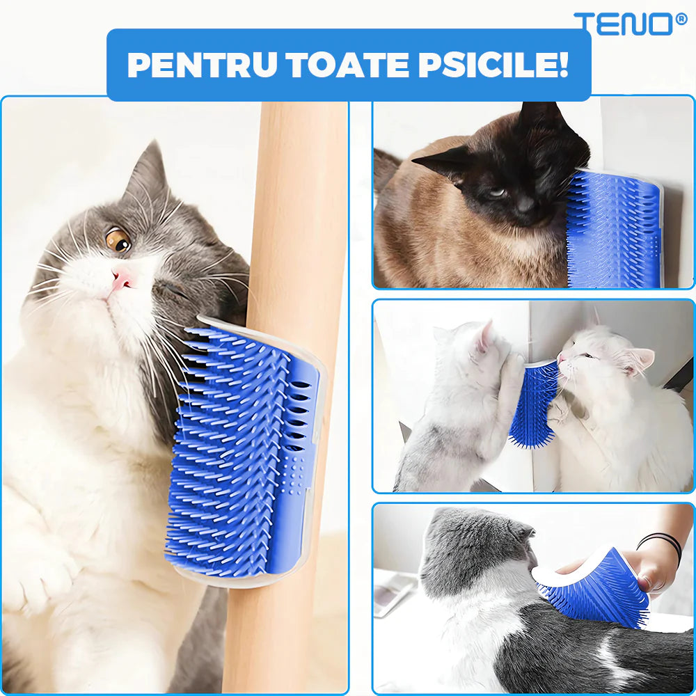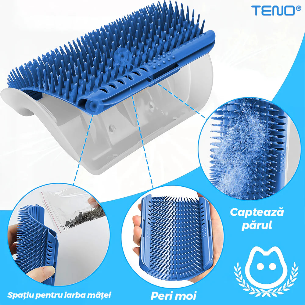 În loc să se frece de colțurile ușilor sau de canapea, are un punct dedicat pentru periaj și masaj.