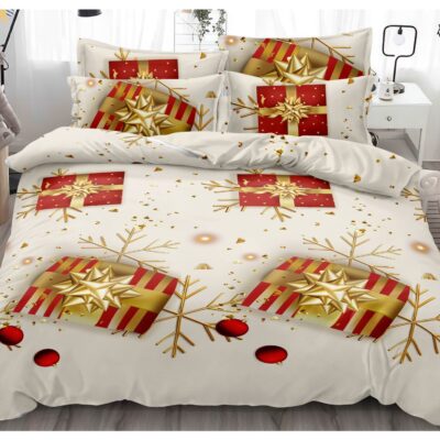 Lenjerie pat 2 persoane, 6 Piese, Bumbac Finet, Crem/Rosu, Cadouri, ST11098