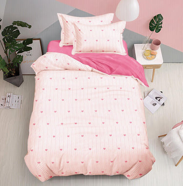 Lenjerie pat single 1 Persoana, 4 PIESE, Bumbac Finet, Inimioare, Roz, Y60-144