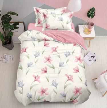 Lenjerie pat single 1 Persoana, 4 PIESE, Bumbac Finet, Crini, Roz, Y60-147