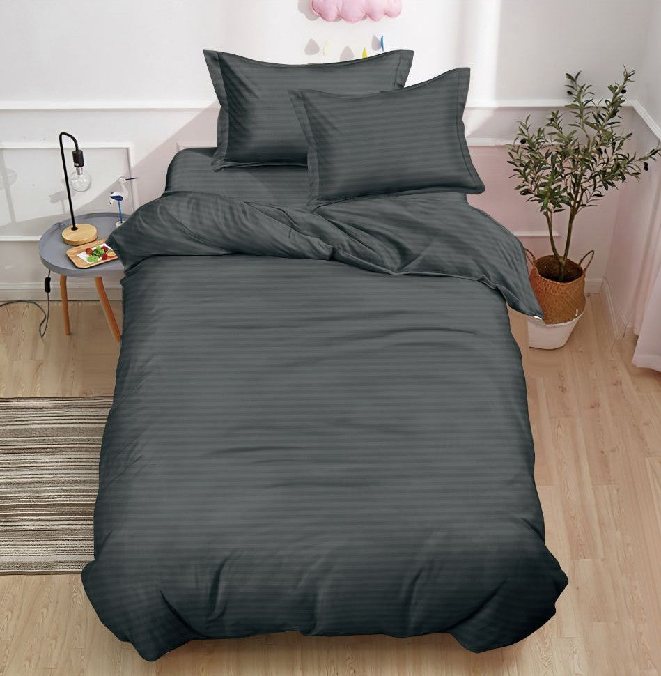 Lenjerie de Pat Cu Elastic, 1 Persoana, Damasc Finet, 4 Piese, UNI, Gri Inchis, DY-08