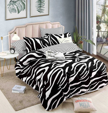 Pachet Promotional, Lenjerie pat dublu, 6 PIESE, Bumbac Finet, Zebra, Alb/Negru, J1219