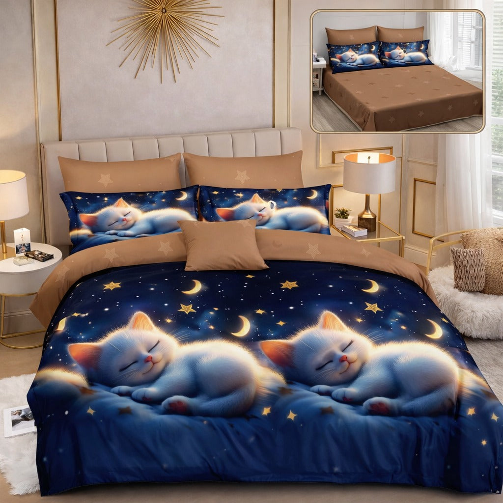 Transformă-ți dormitorul într-un spațiu de rafinament cu această lenjerie 6 piese din bumbac finet. Finetul dens și plăcut la atingere, combinat cu tehnologia de imprimare, oferă un aspect spectaculos și o senzație luxoasă de confort. Perfectă pentru un somn odihnitor și o estetică de revistă.