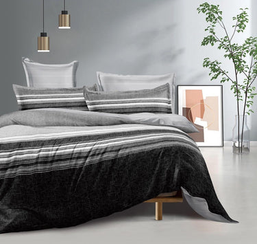 Lenjerie Pat Dublu, 4 Piese, Bumbac Satinat, Linii, Gri/Negru, i14625-Elastic