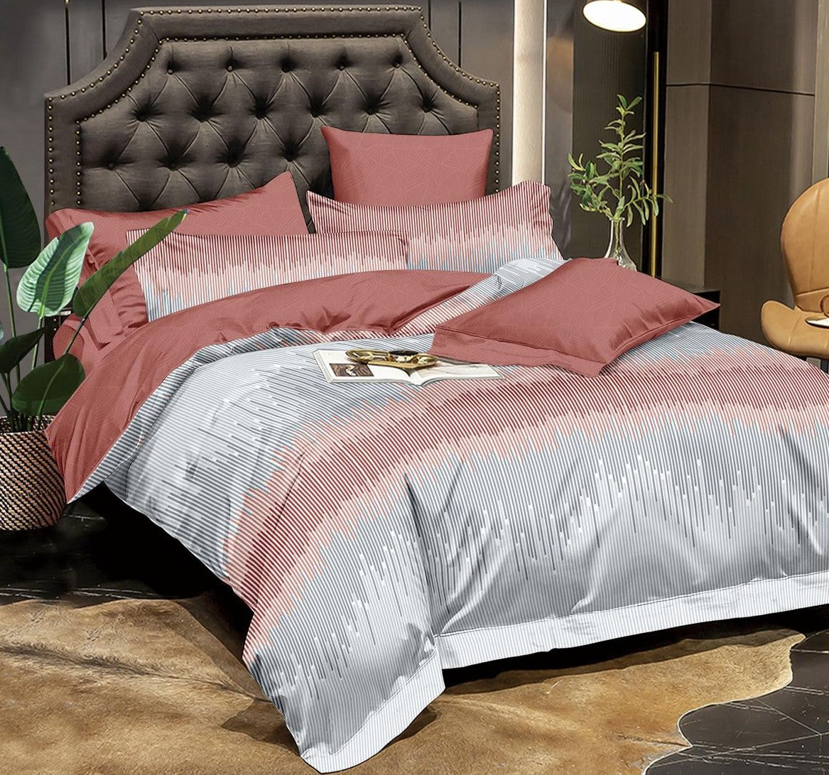 Lenjerie Pat Dublu, 4 Piese, Bumbac Satinat, Linii, Multicolor, i14621-Elastic