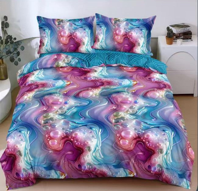 Lenjerie Pat Dublu, Bumbac Satinat 4 Piese, Elegant, Multicolor, A50-725