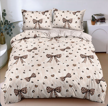 Lenjerie Pat Dublu, Bumbac Satinat 4 Piese, Fundite, Crem/Maro, A50-697