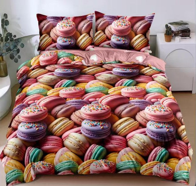 Lenjerie Pat Dublu, Bumbac Satinat 4 Piese, Macarons, Multicolor, A50-721