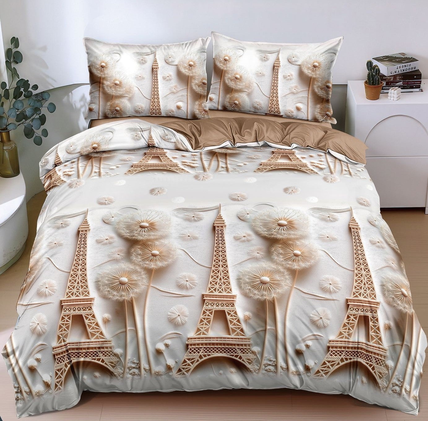 Lenjerie Pat Dublu, Bumbac Satinat 4 Piese, Paris, Maro, A50-700