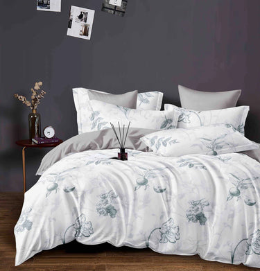 Pachet Promotional, Bumbac Finet, Pat Dublu, 6 Piese, Floricele, Gri/Alb, J1233-ELASTIC