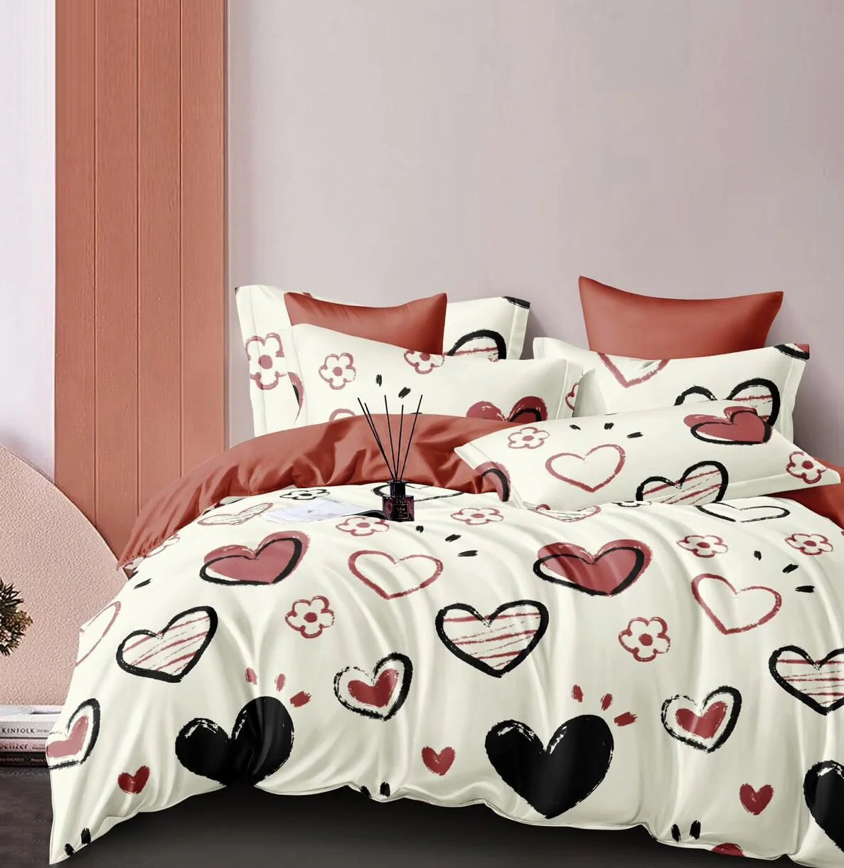 Pachet Promotional, Bumbac Finet, Pat Dublu, 6 Piese, Inimioare, Maro, J1226-ELASTIC