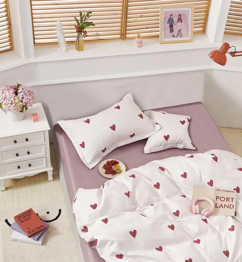 Pachet Promotional, Lenjerie Pat Dublu, 6 Piese, Bumbac Finet, Inimioare, Multicolor, R60-376