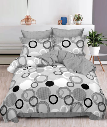 Pachet Promotional, Lenjerie Pat Dublu, 6 Piese, Bumbac Finet, Cercuri, Gri, R60-448