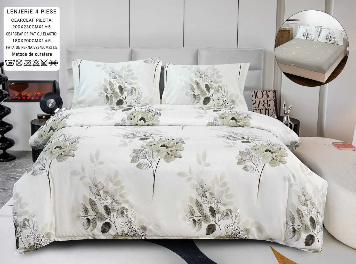 - Lenjerii cu cearceaf de pat cu elastic 180×200 cm.