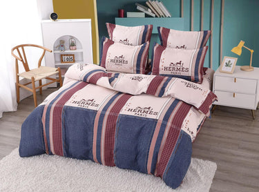 Lenjerie Luxury, Bumbac Finet, 6 Piese, Elegant, Crem/Albastru, M308