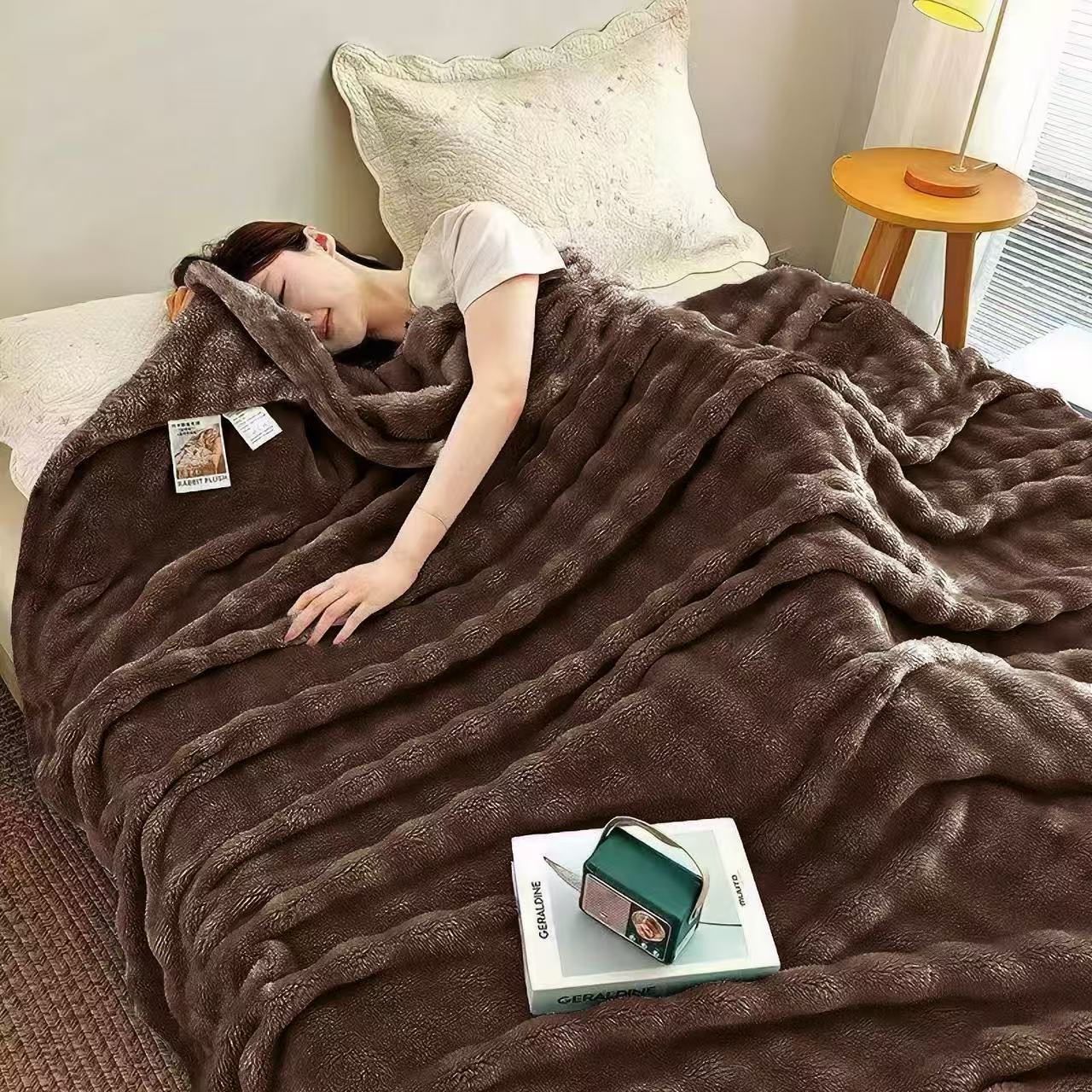 🛏️ 1 × Pătură pufoasă tip cocolino / fleece – dimensiune mare, pentru pat sau canapea.