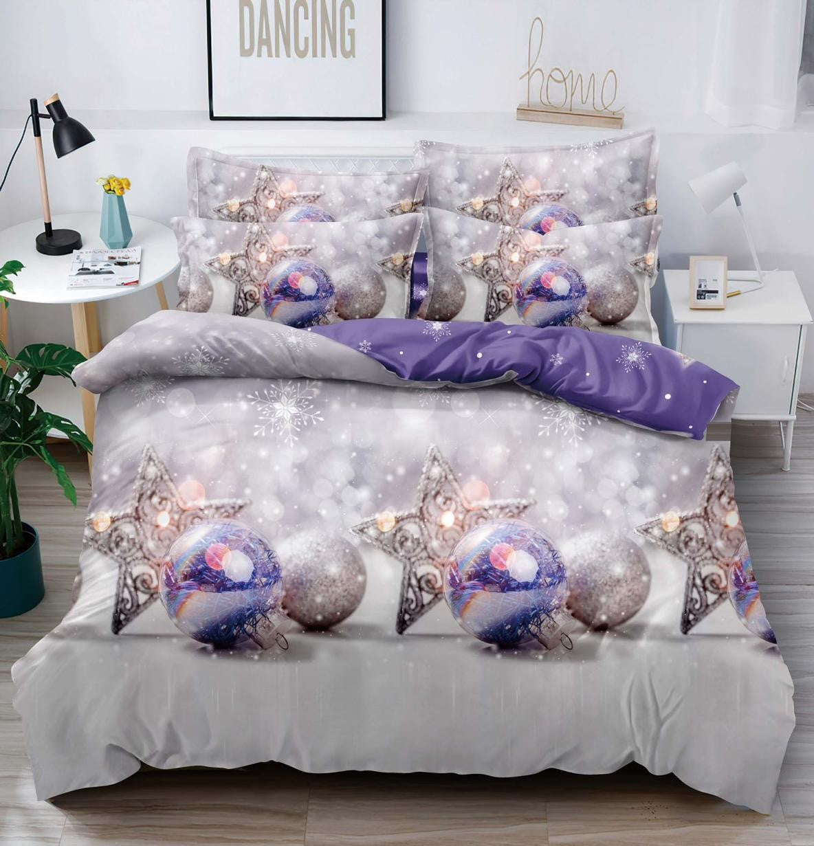 Lenjerie 1 Persoana, Bumabc Finet, 4 Piese, Globuri, Mov, J1304