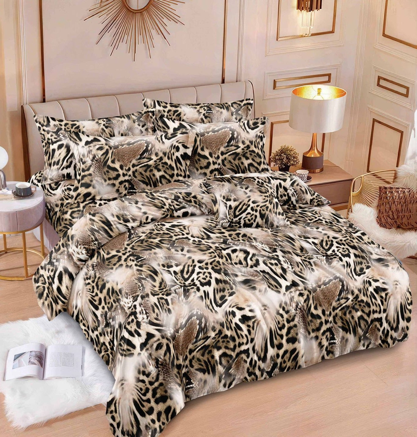 - Lenjerie din bumbac finet premium cu imprimeu animal print leopard.