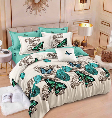 Lenjerie Bumbac Finet, 6 Piese, Fluturi, Turcoaz/Bej, R60-587