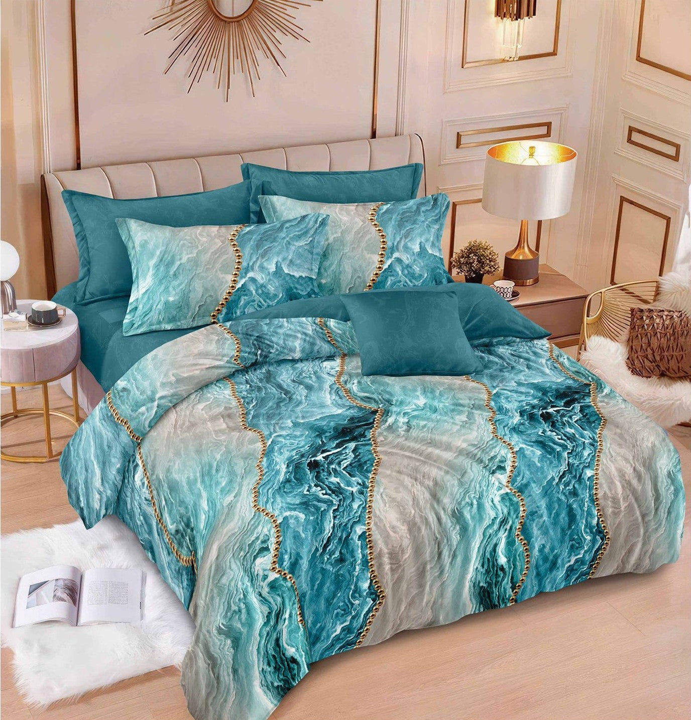 Lenjerie de Pat Bumbac Finet 6 Piese – Marble Aqua Luxury