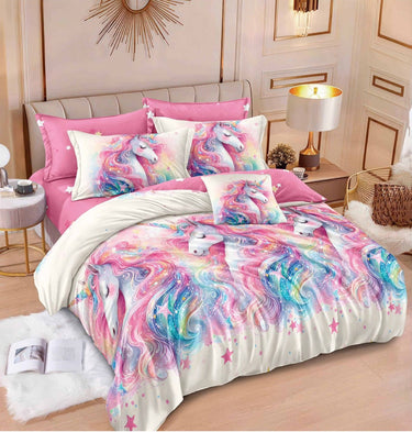 Lenjerie Bumbac Finet, 6 Piese, Unicorni, Roz, R60-584