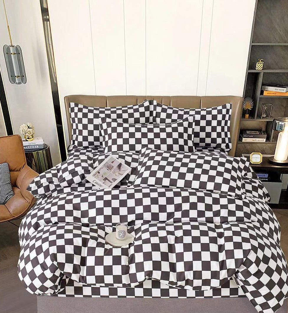 Lenjerie Bumbac Finet cu Elastic 6 Piese,Romburi,Negru-Alb , T228