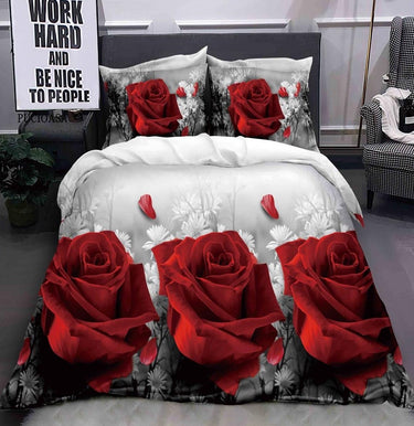 - Set 3D trandafiri roșii, ideal pentru pat matrimonial & utilizare zilnică.