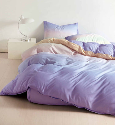 Lenjerie de Pat Dublu 4 Piese – Bumbac Satinat, cu Elastic, Degrade, Multicolor