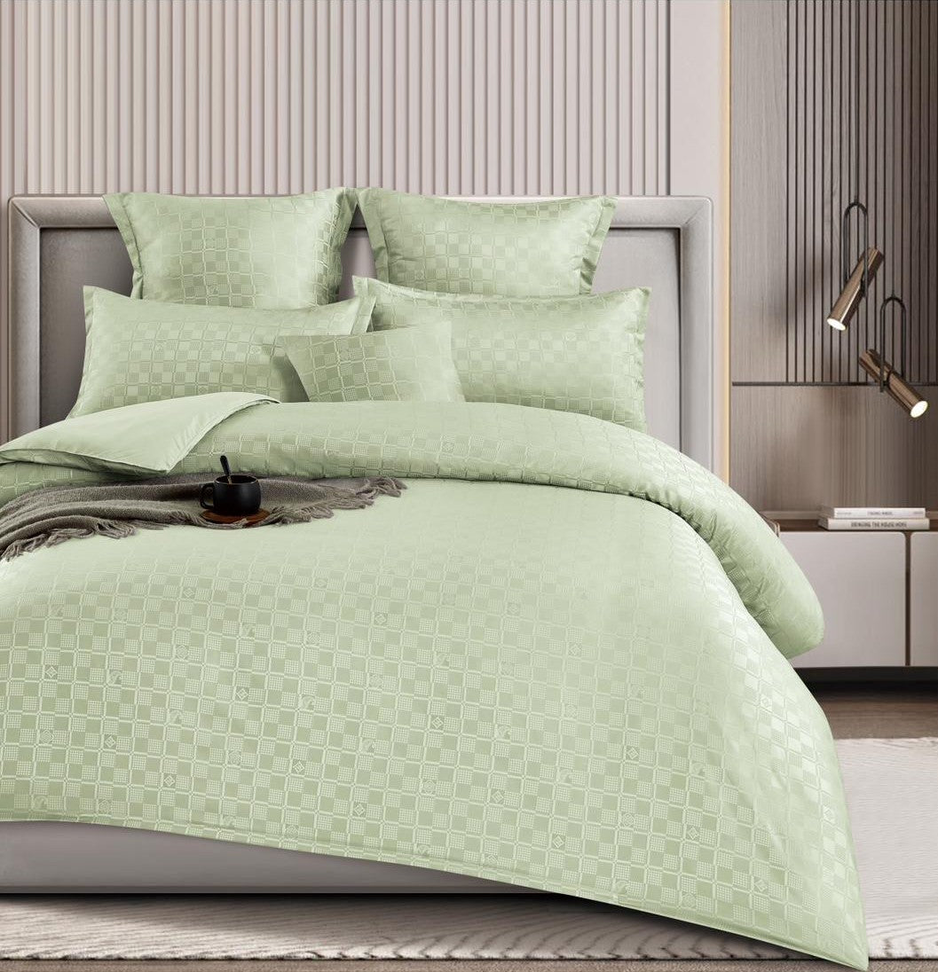 Lenjerie din finet gros într-o nuanță intensă de verde kaki, cu un discret model în carouri satinate care prinde frumos lumina. Setul este ideal pentru dormitoarele moderne sau clasice care își doresc un plus de rafinament, fără imprimeuri încărcate. Cearceaful de pat este prevăzut cu elastic pe colțuri, pentru a îmbrăca perfect salteaua, iar pilota și fețele de pernă sunt realizate în același design unitar, elegant și ușor de asortat.