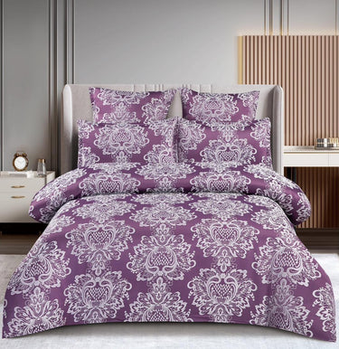 - Lenjerie din finet jacquard, cu model baroc alb pe fundal mov.
