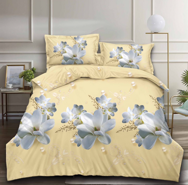 Lenjerie Pat Dublu, Bumbac Satinat, 3D, Floricele, Galben, B-595