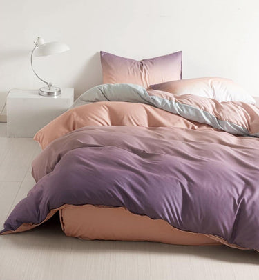 Lenjerie Bumbac Satinat 4 Piese – Degrade Mov, Lila, Roz & Piersică
