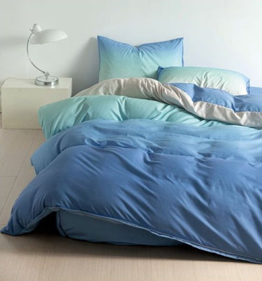 Lenjerie Bumbac Satinat 4 Piese – Degrade Albastru, Bleu & Turcoaz