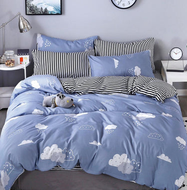 Lenjerie Bumbac Satinat 4 Piese – Albastru Pastel cu Norișori