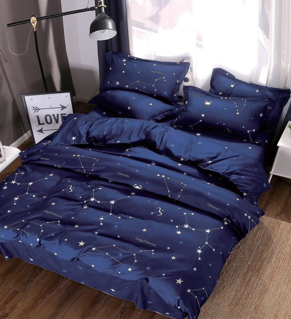 - Lenjerie din bumbac satinat fin, bleumarin intens cu constelații și stele.
