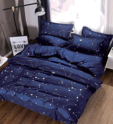 Lenjerie Bumbac Satinat 4 Piese – Bleumarin cu Constelații & Stele