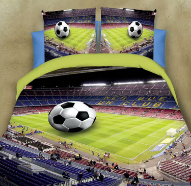 Lenjerie Pat Dublu, Bumbac Satinat, 3D, Teren De Fotbal, Multicolor, B-212