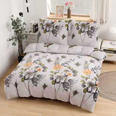 Lenjerie Pat Dublu cu Elastic, Material Pufos, 4 Piese – Floral, Gri/Crem, N15242