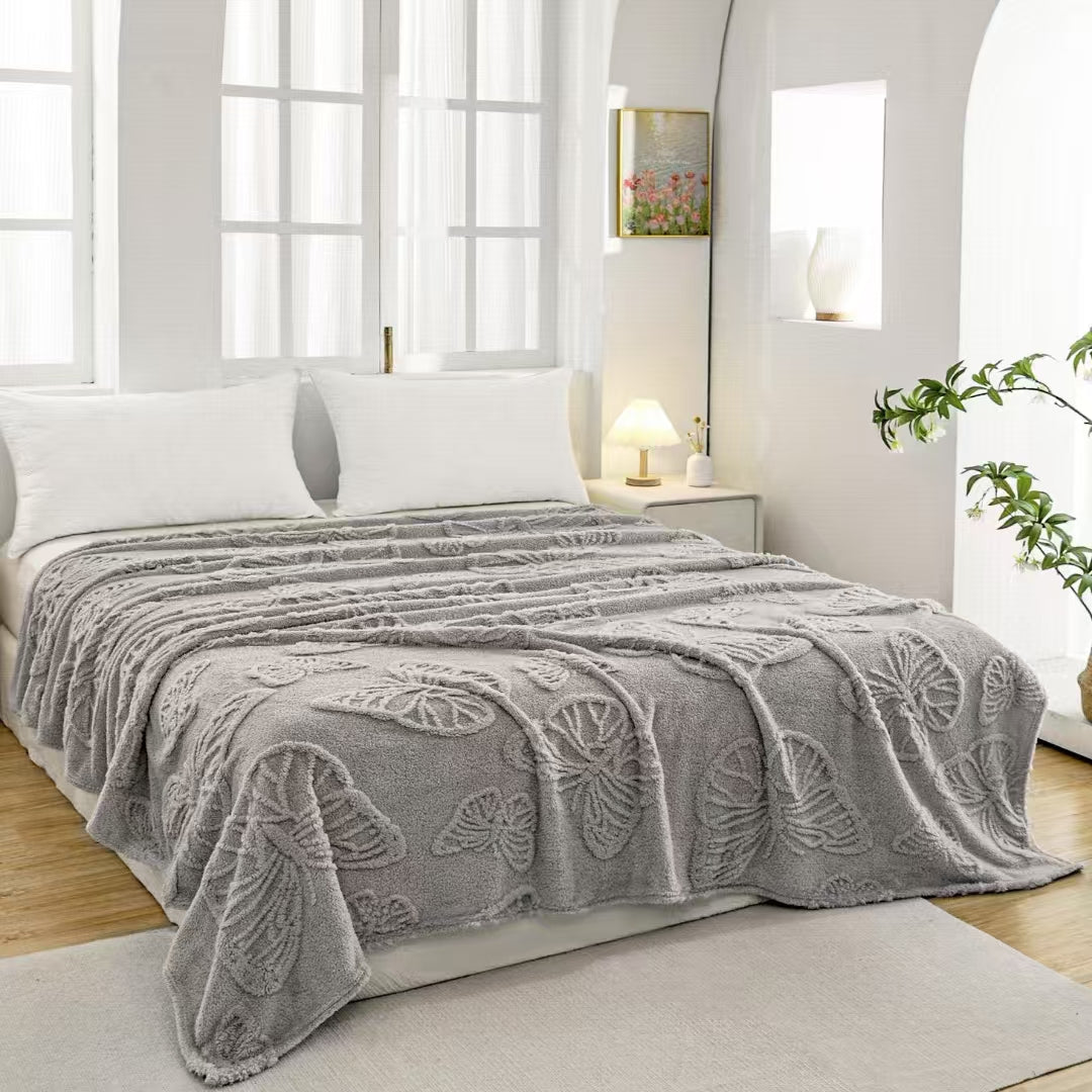 | Tip produs | Pătură pufoasă decorativă cu model de fluturi în relief, pentru pat sau canapea. |
