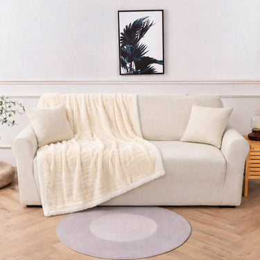 Husa Canapea Catifea + Patura Cocolino Cu Blanita, Uni, Crem/Bej, C5707
