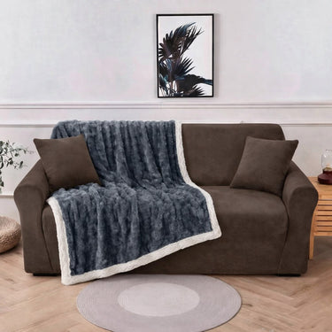 Husa Canapea Catifea + Patura Cocolino Cu Blanita, Uni, Maro/Gri, C5708