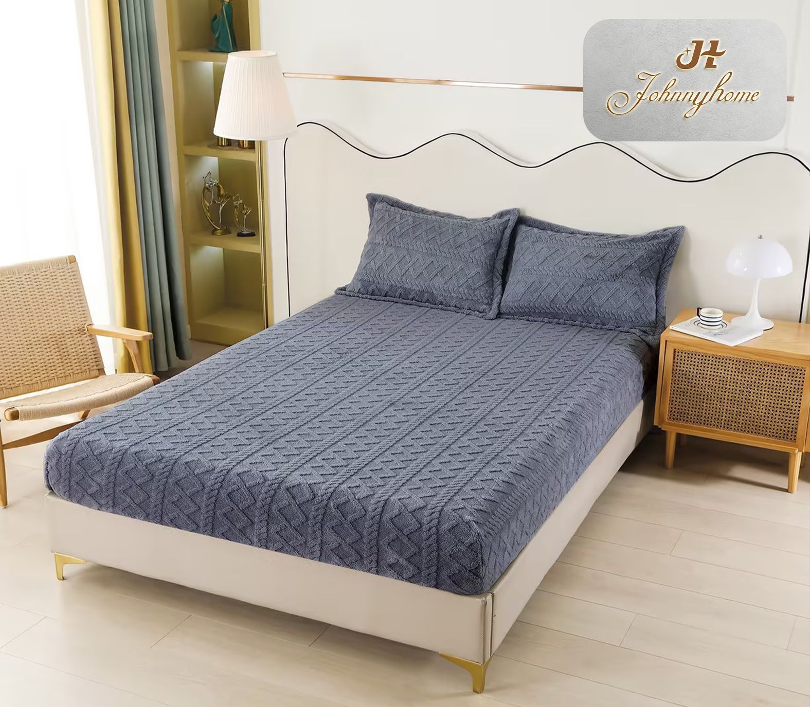 Husa de Pat Cocolino, Tricot, 3 Piese, 180×200 cm, Uni, Gri, C05