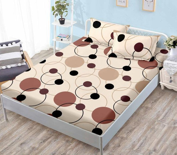 Husa de Pat Din Bumbac Finet cu Elastic 180X200, Cercuri, Bej/Negru/Grena G-63