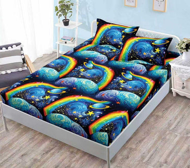 Husa de Pat Din Bumbac Finet cu Elastic, 180X200, Constelatie, Multicolor, G-293