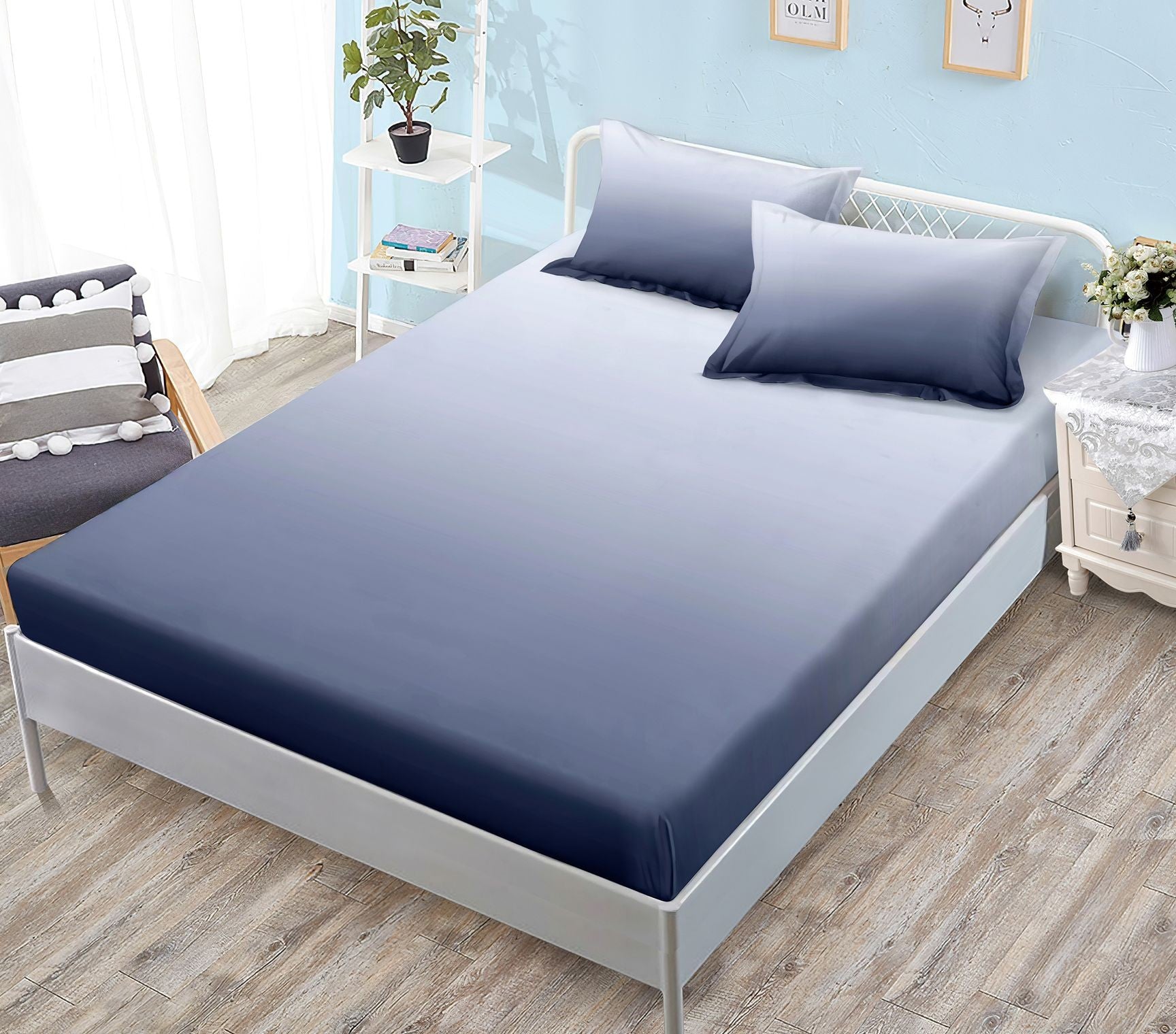 Husa de Pat Din Bumbac Finet cu Elastic 180X200, Degrade, Albastru Inchis/Alb, G-241