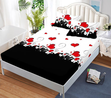 Husa de Pat Din Bumbac Finet cu Elastic 180X200, Inimi, Alb/Negru/Rosu G-116