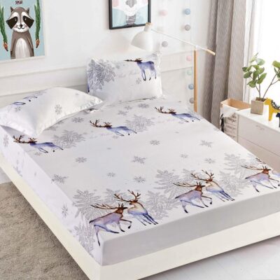 Husa Pat dublu cu elastic, Bumbac Finet, Craciun, Reni Mov, ST10898