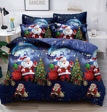 Lenjerie 1 Persoana, Bumabc Finet, 4 Piese, Mos Craciun, Albastru, ST1314